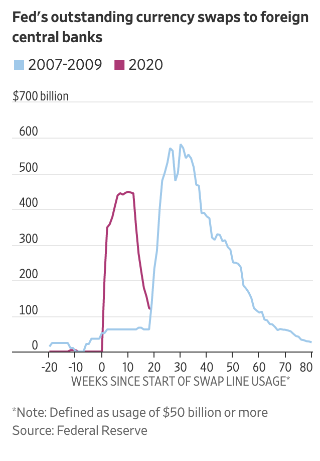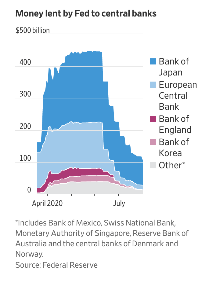 - Ng, Serena. (08-3-2020). “Covid Supercharges Federal Reserve as Backup Lender to the World,” Wall Street Journal. Retrieved August 09, 2020, from https://www.wsj.com/articles/fed-federal-reserve-jerome-powell-covid-coronavirus-dollar-lending-economy-foreign-currency-11596228151?mod=djemMoneyBeat_us