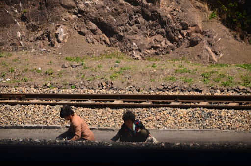 They were digging through grass beside the railroad tracks, despite there being barely any grass. The reason for such a struggle was apparent: they had nothing to eat.