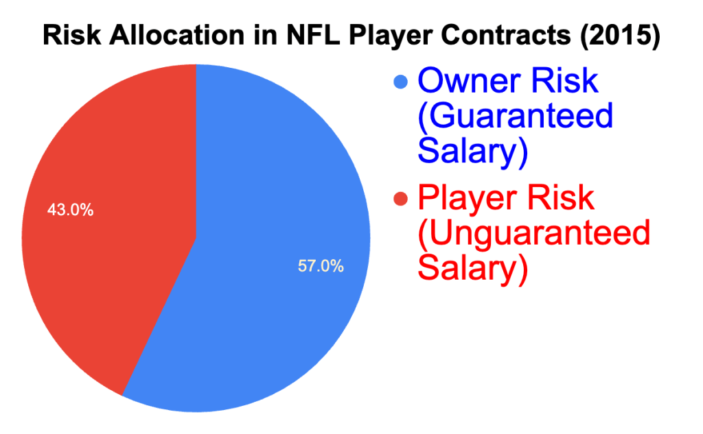 Figure 3: We can see how in the NFL, approximately 57% of a player’s contract value is guaranteed, meaning teams are obligated to pay this portion regardless of performance or release. The remaining 43% is typically non-guaranteed, exposing players to financial risk if they are cut or injured (having somewhat of a balance).